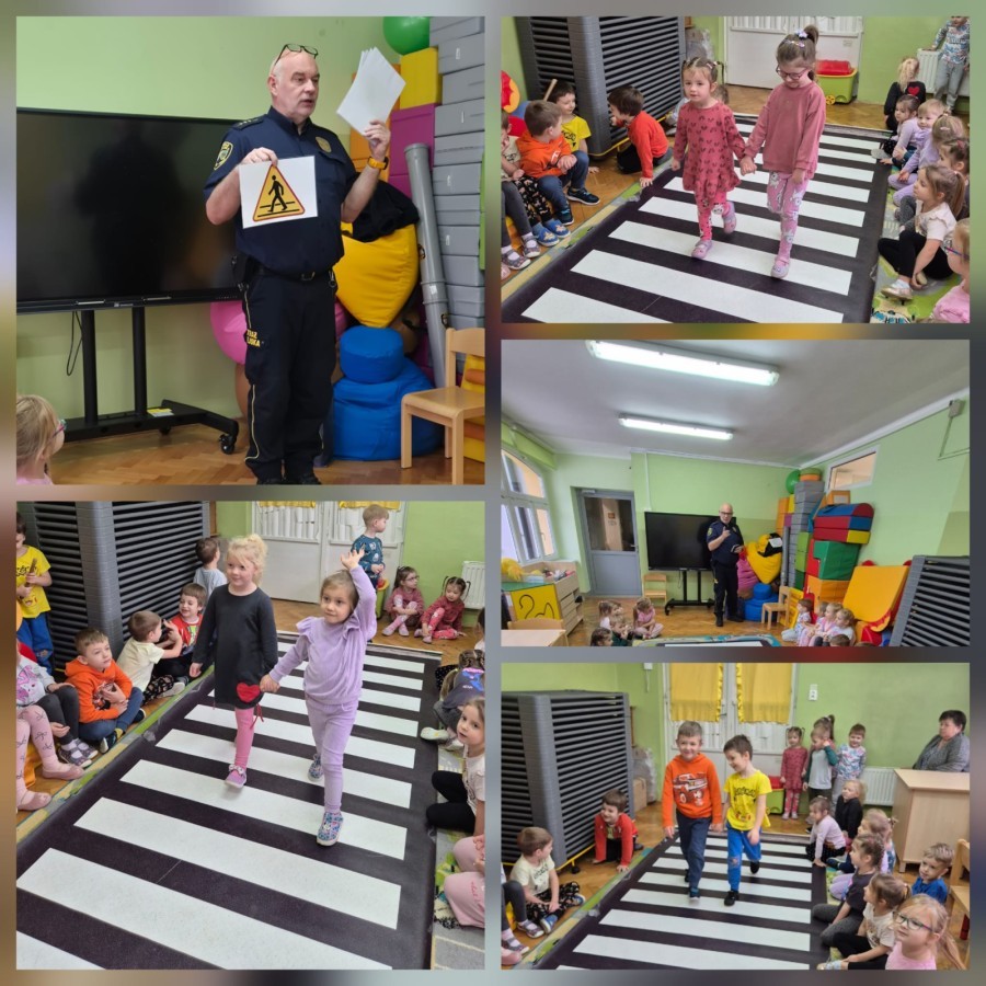 Spotkanie ze Strażnikiem Miejskim. Dzieci wzięły udział w spotkaniu z pracownikiem Straży Miejskiej, podczas którego poznały zasady bezpieczeństwa obowiązujące w codziennym życiu. Gość opowiedział o swojej pracy, wyjaśnił, jak reagować w sytuacjach zagrożenia oraz przypomniał najważniejsze zasady bezpiecznego poruszania się po drodze.