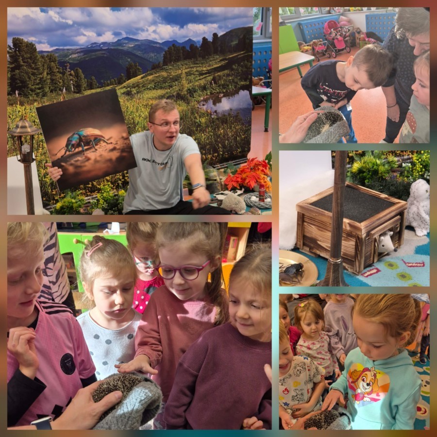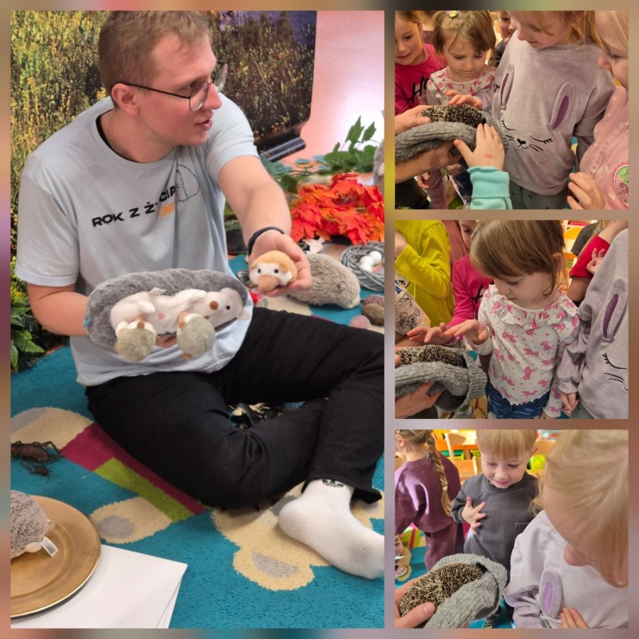 Warsztaty przyrodnicze "Rok z życia jeża". Podczas tego spotkania dzieci dowiedziały się jak wygląda jego życie w poszczególnych porach roku. Poznały zwyczaje jeża, jego środowisko oraz sposób przygotowania do zimy. Dzieci rozwiały tym zainteresowanie przyrodą.