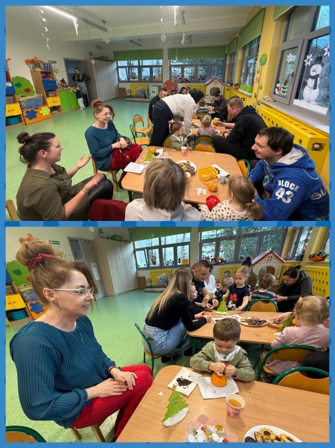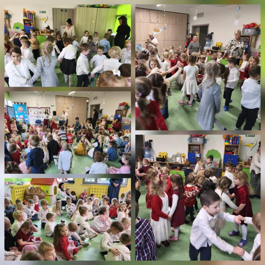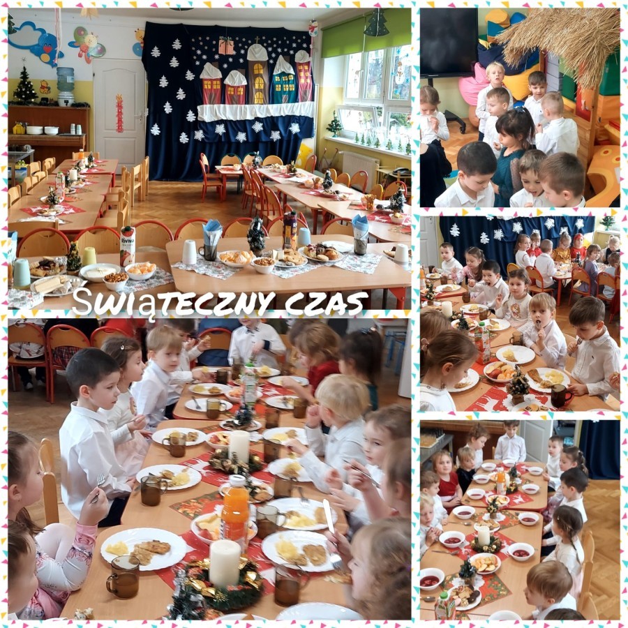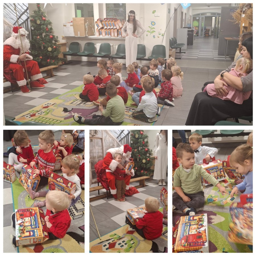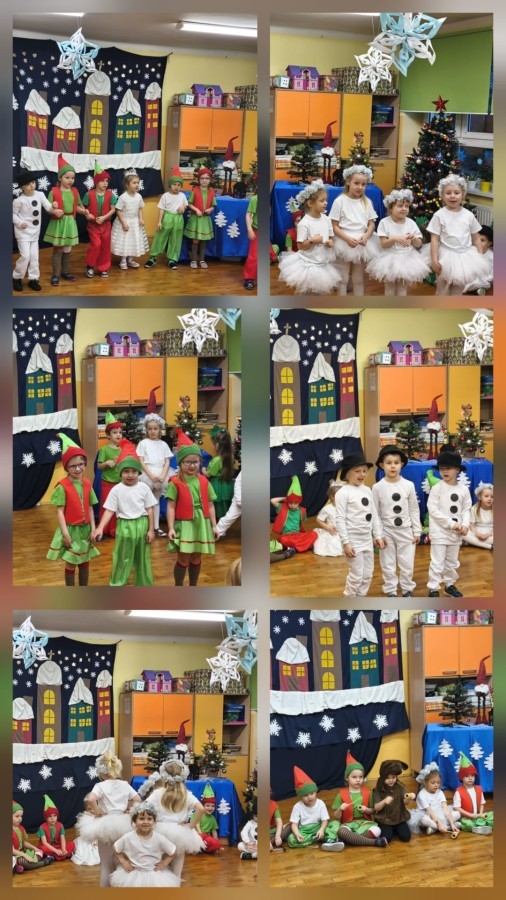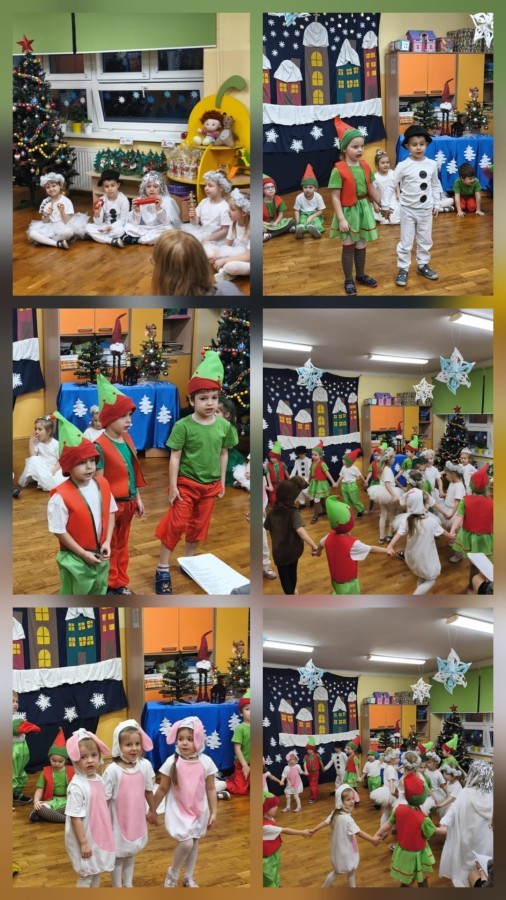 W grudniu, jak to w okresie przedświątecznym działo się dużo. Braliśmy udział w akcji "Szanuj Energię, chroń klimat", gdzie wykonaliśmy kolejne przygotowane zadania. Spotkaliśmy się z Mikołajem, otrzymaliśmy fantastyczne prezenty, wspólnie z rodzicami wykonywaliśmy piękne świąteczne dekoracje, odbył się kiermasz świątecznych niespodzianek, mieliśmy cudowną i pyszną wigilię przedszkolną, na której składaliśmy życzenia.