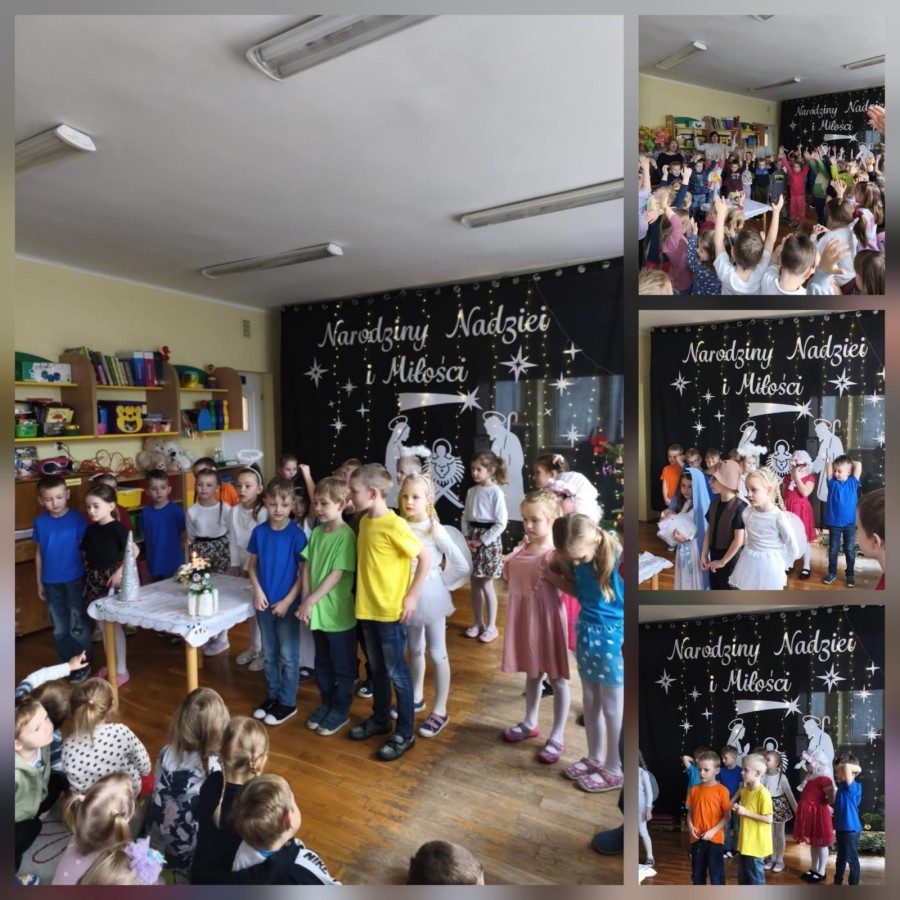 A dla rodziców przedstawienie jasełkowe przygotowanie przez dzieci z grupy II. Mali artyści z wielkim zaangażowaniem zaprezentowali świąteczną historię, wprowadzając rodziców w ciepłą, bożonarodzeniową atmosferę. Występ był pełen radości, wzruszeń i został nagrodzony gromkimi brawami.