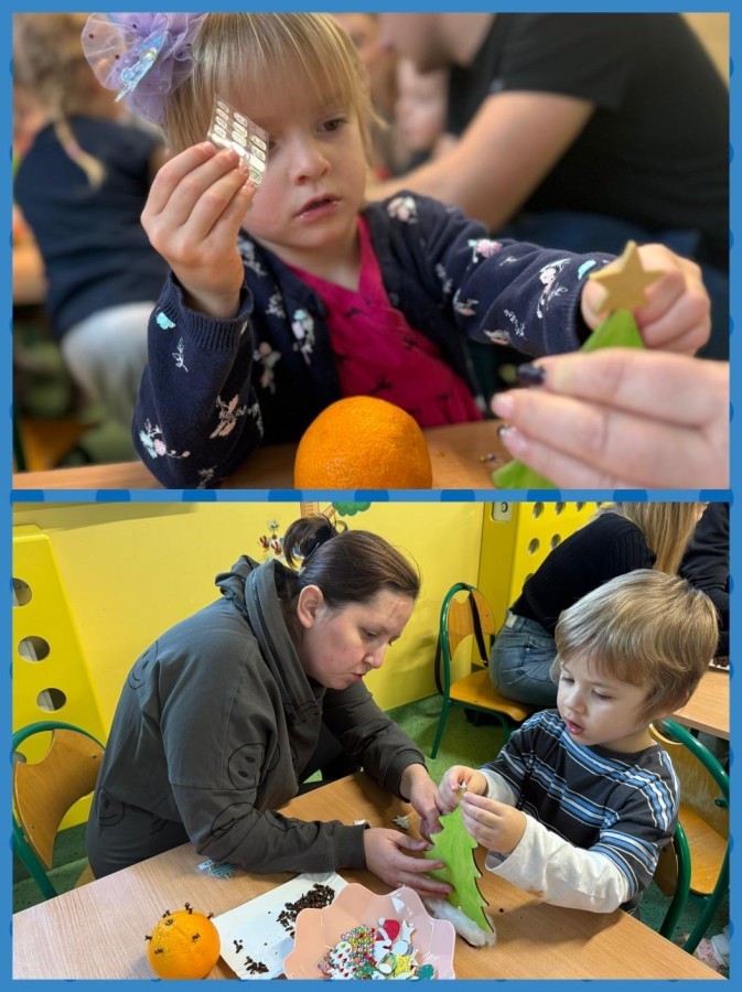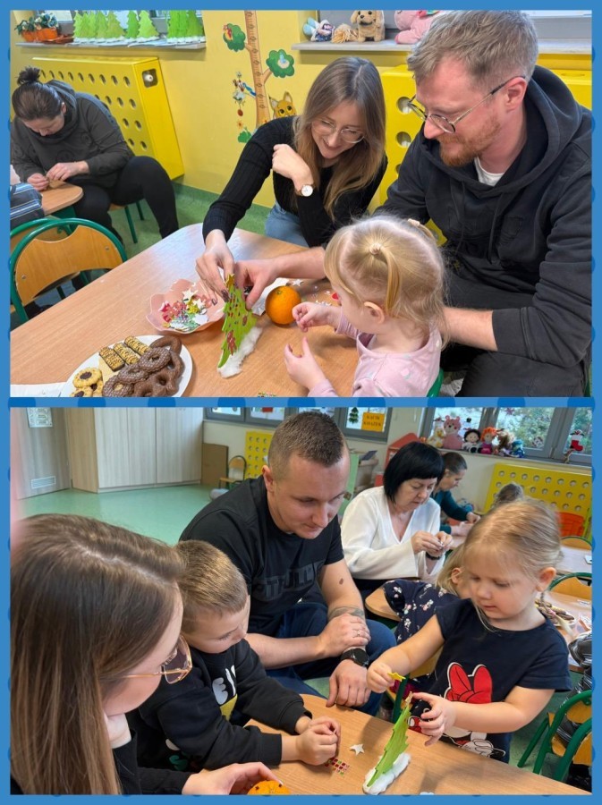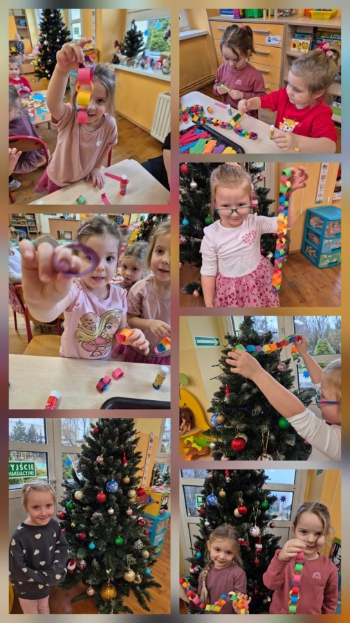 Świąteczne przygotowania - dzieci z grupy I ubierają choinkę i wykonują kolorowy łańcuch.