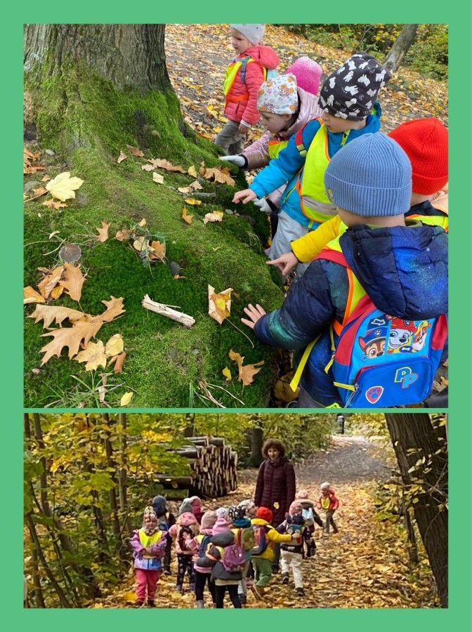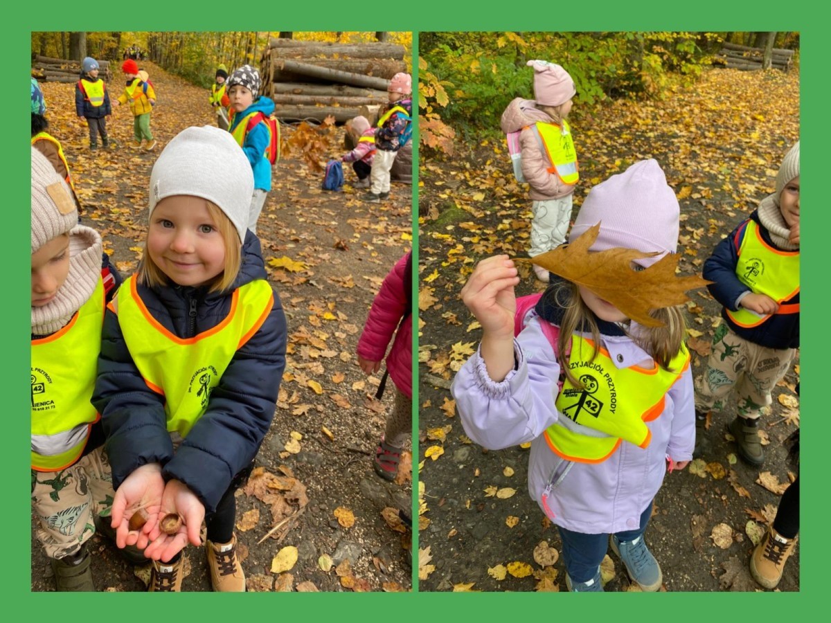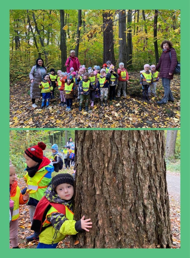 Przepiękna jesień w naszym pobliskim lesie Doliny Wapienicy. Grupa VIII poznawała przyrod na jesiennej wycieczce.