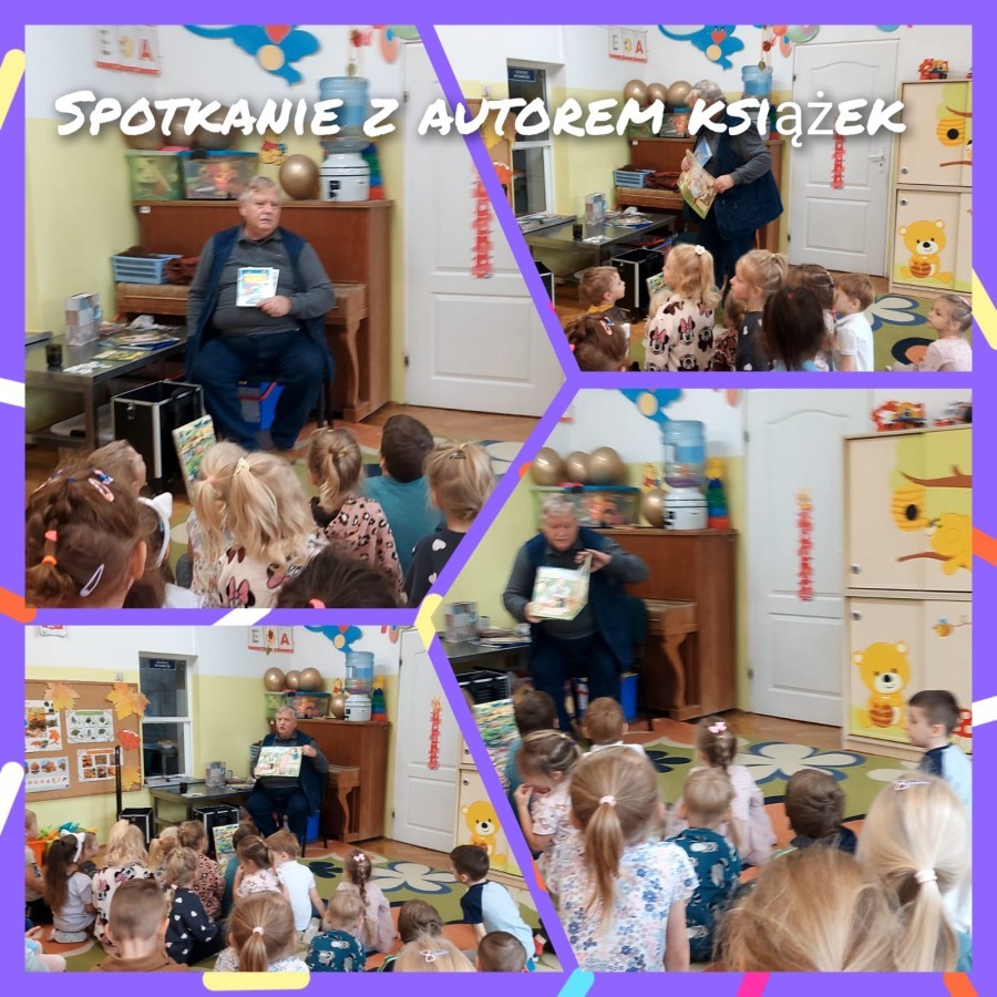 Spotkanie z autorem książek - dzieci rozwiązywały zagadki, dowiedziały się skąd autor czerpie pomysły na kolejne bajeczki.