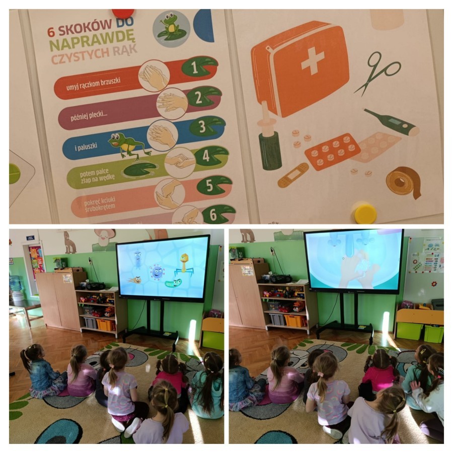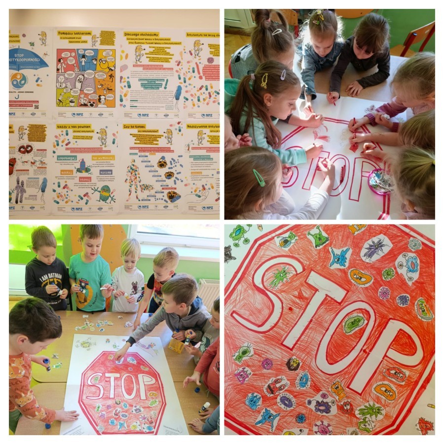 W grupie V obchodziliśmy Światowy Dzień Antybiotyków. Dzieci wzięły udział w zajęciach, podczas których w prosty i zrozumiały sposób omówiliśmy czym są leki, kto je może podawać oraz dlaczego antybiotyki stosuje się tylko wtedy, gdy zaleci je lekarz. Przedszkolaki dowiedziały się również, jak ważne jest dbanie o higienę-mycie rąk, zasłanianie ust przy kaszlu i zdrowe nawyki, które pomagają zapobiegać chorobom. Wykonaliśmy plakat "Stop dla bakterii i wirusów", przypominający o codziennych działaniach wspierających odporność.
