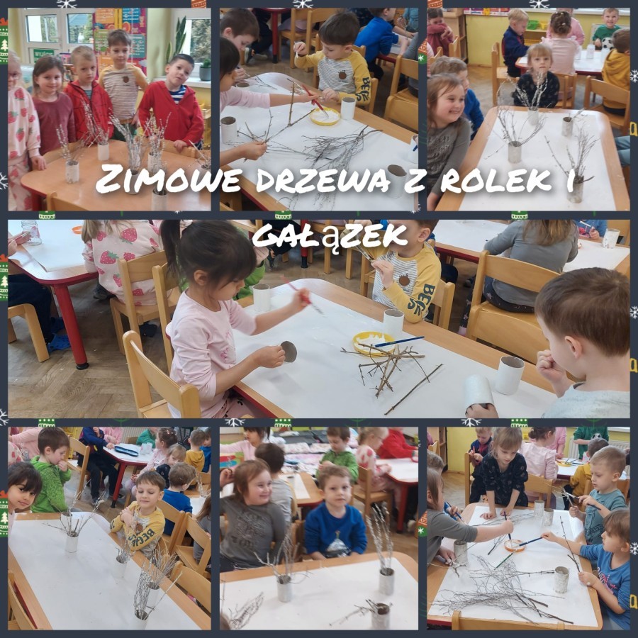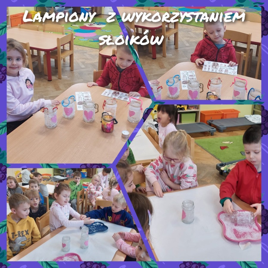 Kolejnym działaniem było wykorzystanie rolek po papierze toaletowym. Dzieci ozdabiały rolki oraz malowały farbami gałązki, z których powstały niezwykłe zimowe drzewa. Prace zachwycały pomysłowością i pokazały, że nawet najprostsze materiały mogą stać się bazą do stworzenia małych dzieł sztuki. Ostatnim etapem było wykonanie lampionów ze słoiczków z użyciem soli. Przy wsparciu nauczyciela dzieci stworzyły piękne, klimatyczne lampioniki, które wprowadziły magiczny nastrój i pokazały, jak w prosty sposób można ponownie wykorzystać przedmioty codziennego użytku. Wszystkie te działania były doskonałym przykładem na to, jak poprzez zabawę i twórczość można kształtować postawy proekologiczne. Dzieci z grupy II przekonały się, że recykling to nie tylko obowiązek, ale także świetna okazja do rozwijania wyobraźni, kreatywności i troski o naszą planetę ![]()