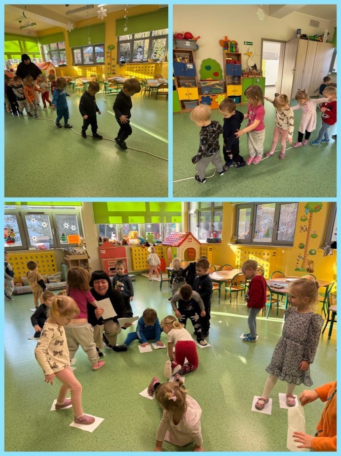 W grupie IX uczestniczyliśmy w zabawach usprawniających koordynację ruchową, stabilizujących ciało, mięśnie głębokie.