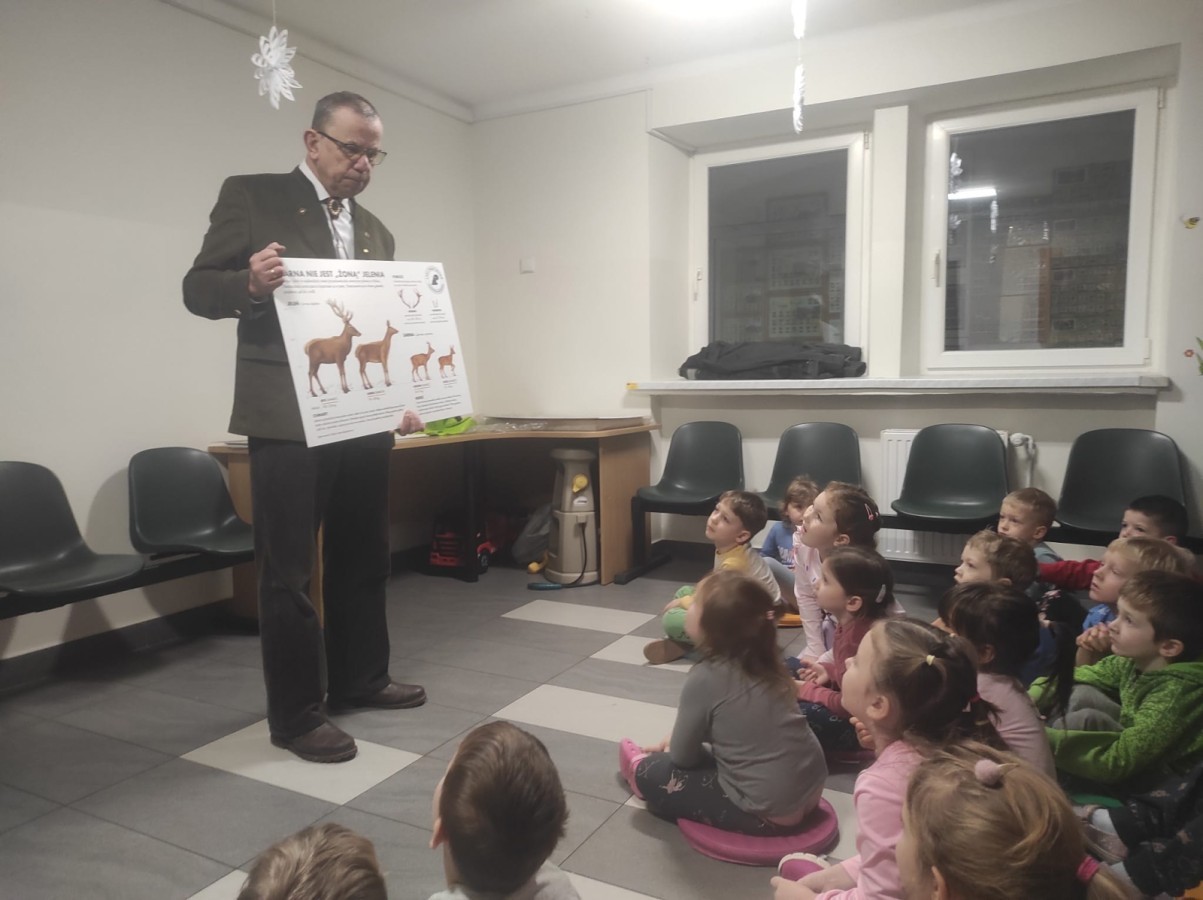 28 stycznia odbyło się w przedszkolu spotkanie z przedstawicielem Polskiego Związku Łowieckiego w Bielsku-Białej. Dzieci z grupy 2 poznały ciekawostki z życia leśnych zwierząt.