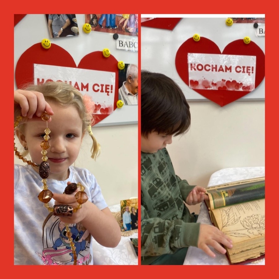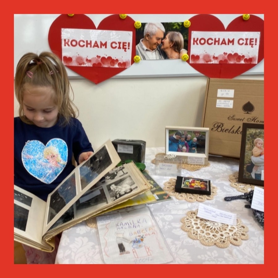 Z okazji Dnia Babci i Dziadka grupa 8 wspólnie z rodzicami zorganizowała Kącik Skarbów Babci i Dziadka - niezwykle wzruszające i piękne poznawanie historii rodzinnych. Dzieci pięknie prezentowały i opowiadały o skarbach.