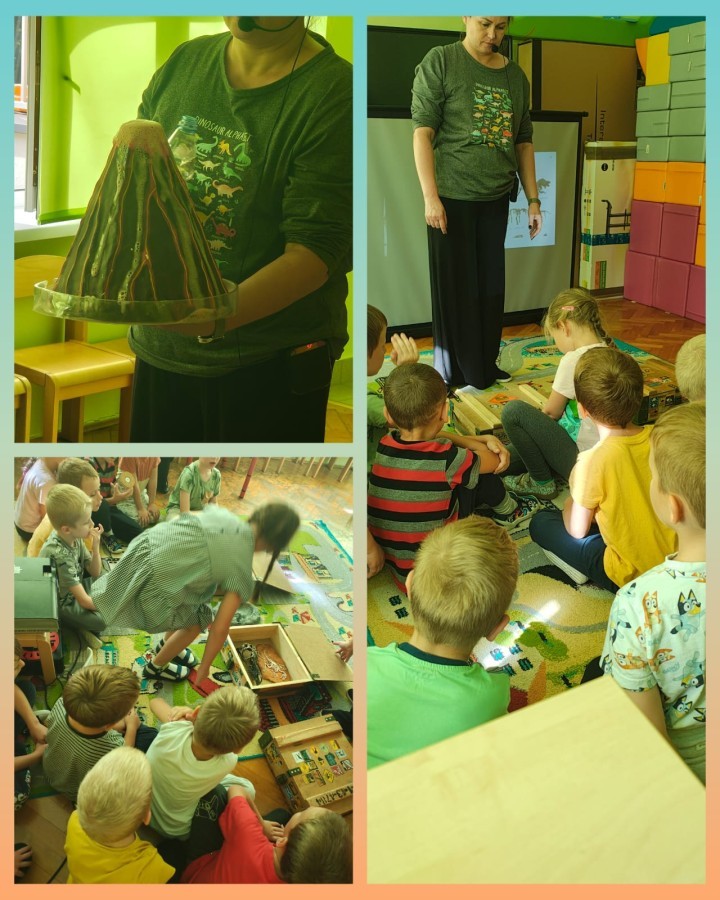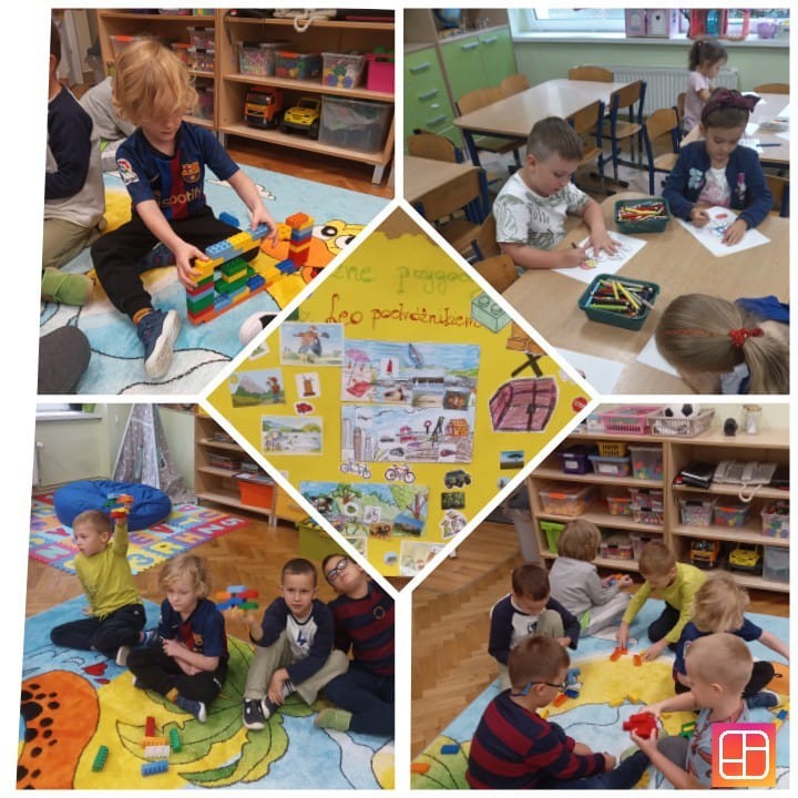 W grupie 6-latków odbyły się dwa zajęcia z cyklu "Podróż z Leo - książka". Podczas pierwszego spotkania dzieci poznały głównego bohatera - LEO, a następnie rozmawiały o jego cechach i przygodach. drugie zajęcia poświęcone były tworzeniu wspólnej mapy podróży, która stała się inspiracją do dalszych zabaw i rozwijania dziecięcej wyobraźni.