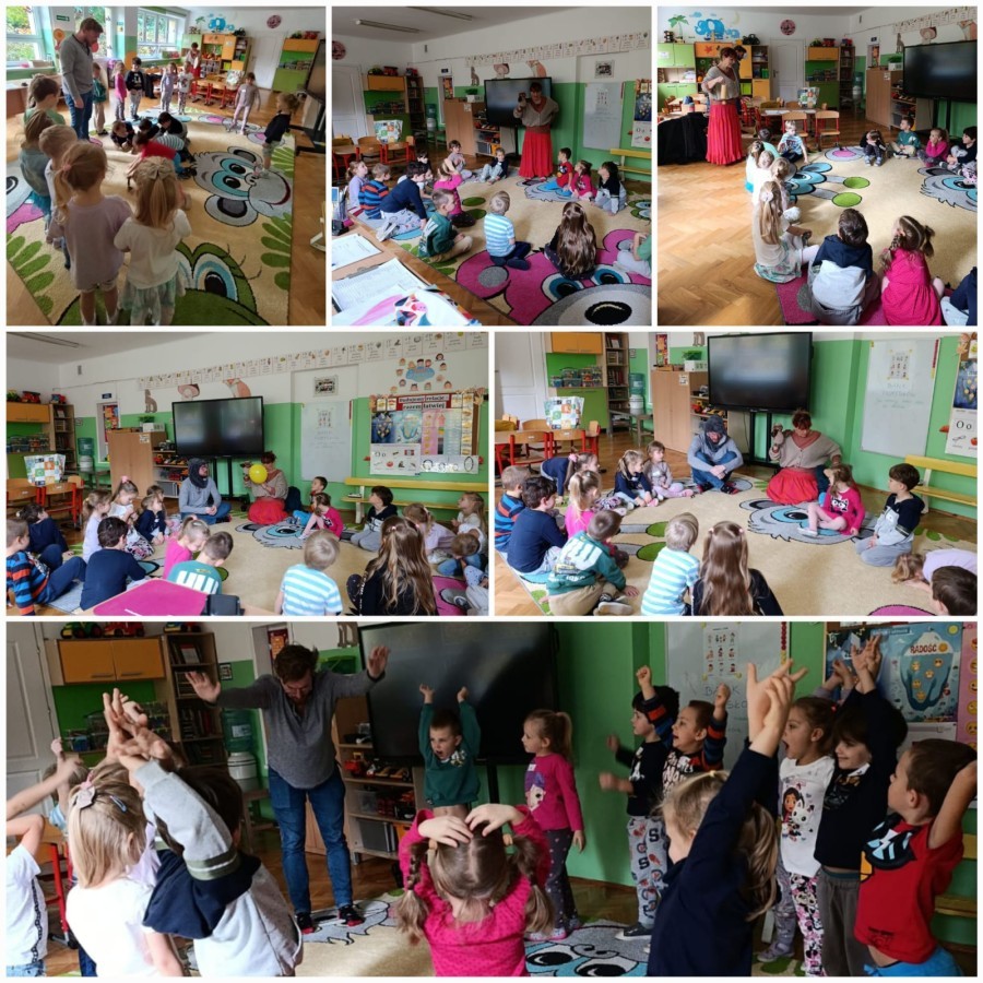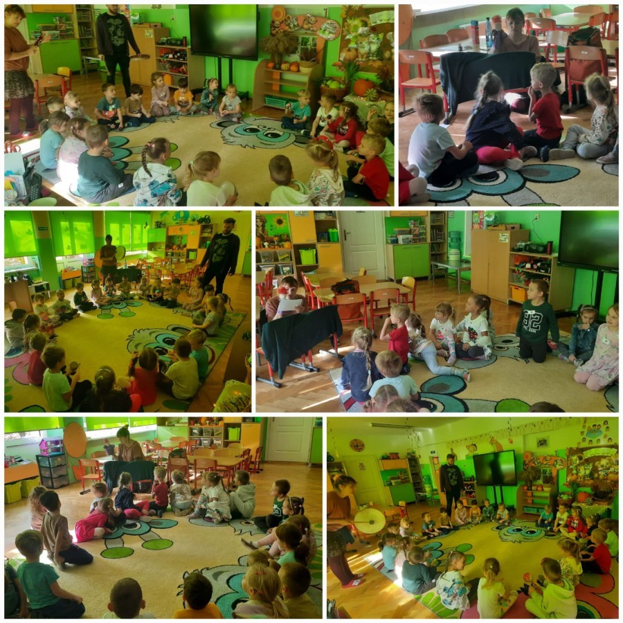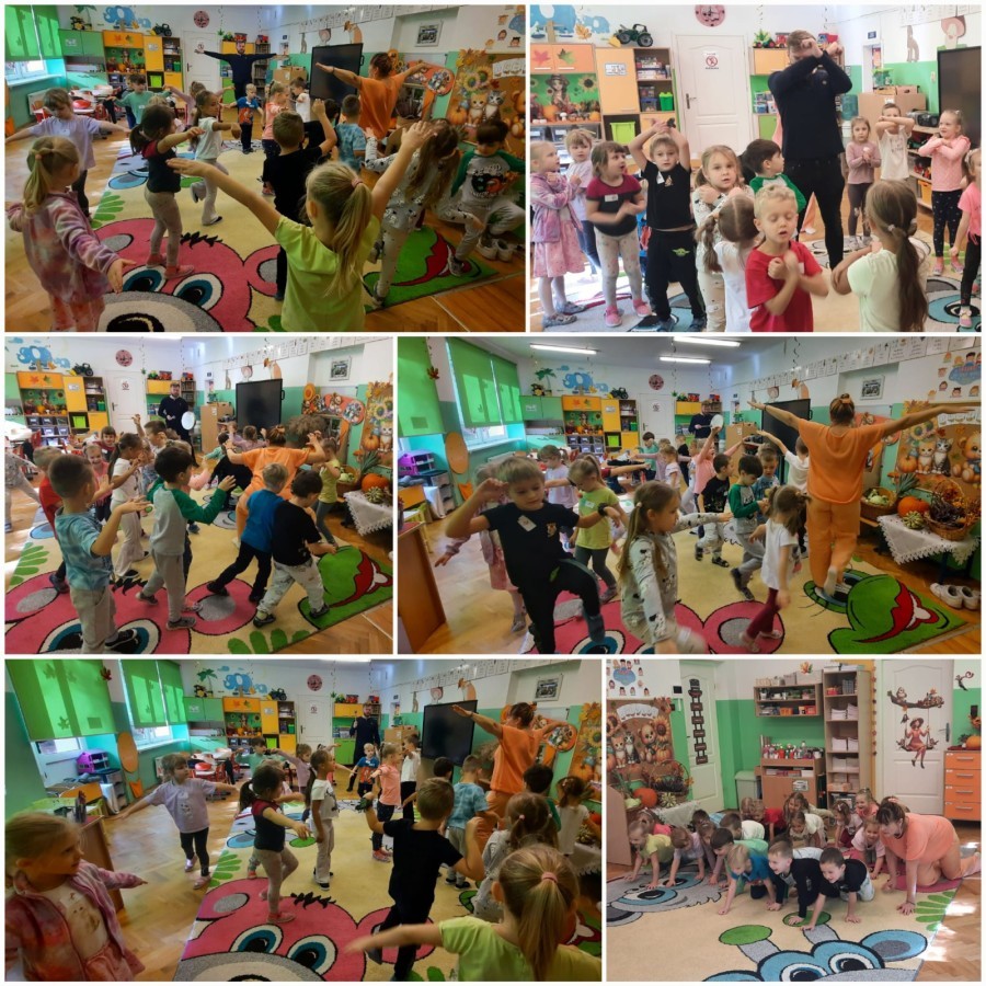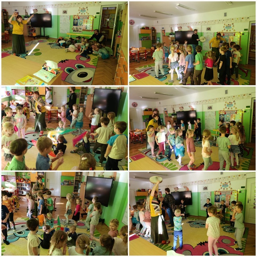W październiku dzieci z Grupy V wzięły udział w Programie „Poruszające Bajki o Emocjach”, przygotowanym przez specjalistów zajmujących się edukacją emocjonalno-społeczną najmłodszych. Program był wyjątkową podróżą w świat uczuć i relacji, której celem było wspieranie rozwoju emocjonalnego dzieci, uczenie rozpoznawania, nazywania i wyrażania emocji w bezpieczny i konstruktywny sposób oraz wzmacnianie kompetencji społecznych, empatii i współpracy w grupie. Podczas dziesięciu spotkań z wykwalifikowanymi trenerami przedszkolaki poznawały codzienne sytuacje związane z przeżywaniem uczuć i odkrywały, że każda emocja – nawet ta trudna – jest ważna i potrzebna. Każde zajęcia poświęcone były innej emocji, dlatego dzieci z ciekawością przenosiły się do świata bohatera danej bajki, odwiedzając krainę frustracji, złości, smutku, wstydu, strachu, zazdrości czy rozczarowania, a także doświadczając dumy, radości i wdzięczności. Dzięki temu mogły lepiej zrozumieć, co czują w podobnych sytuacjach, i poznać sposoby radzenia sobie z napięciem oraz nieprzyjemnymi przeżyciami. Warsztaty miały charakter aktywny, a ich ogromnym atutem była możliwość grania na różnorodnych instrumentach – bębnach, kalimbach, tingszach, gongach, kubkach burzowych czy instrumentach perkusyjnych. Dzieci grały na nich intuicyjnie, bez zasad i nut, poprzez ruch, rytm i dźwięk mogły wyrażać emocje w naturalny i twórczy sposób. Program wykorzystywał metody oparte na dramie, muzykoterapii, bajkoterapii, zabawach integracyjnych, ćwiczeniach relaksacyjnych i działaniach plastycznych, co angażowało wszystkie zmysły oraz wspierało rozwój wyobraźni i poczucia sprawczości. Udział w programie wpłynął na poprawę komunikacji między dziećmi, zwiększył ich odwagę do mówienia o swoich uczuciach oraz świadomość tego, jak emocje objawiają się w ciele. Zajęcia cieszyły się dużym zainteresowaniem, a dzieci brały w nich udział z radością, aktywnością i zaangażowaniem. Był to czas pełen odkryć, rozmów i wspólnych przeżyć, który znacząco wzbogacił codzienną pracę wychowawczą naszej grupy i z pewnością pozostanie w pamięci dzieci na długo. Program „Poruszające Bajki o Emocjach” okazał się piękną i wartościową przygodą w rozwijaniu kompetencji potrzebnych każdemu młodemu człowiekowi.